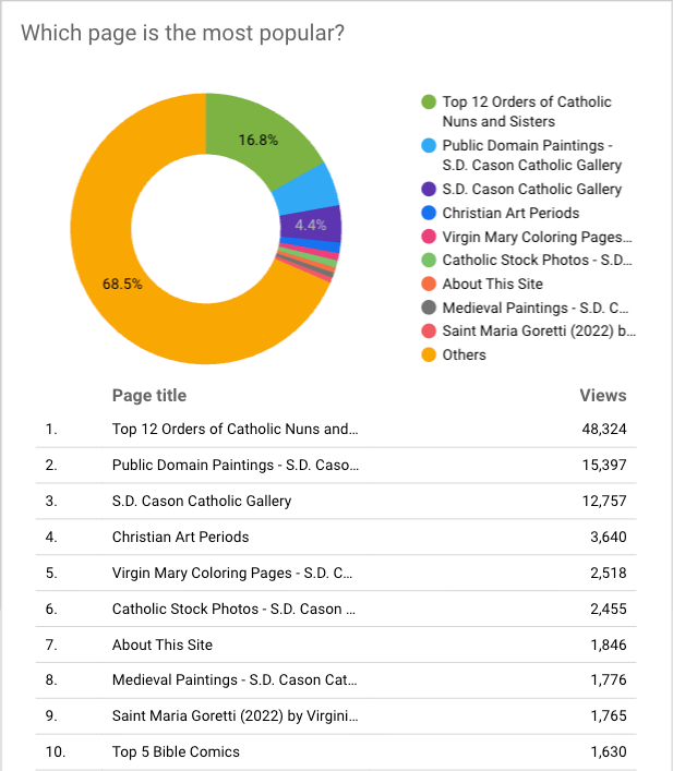 - The page on orders of Catholic nuns and sisters is the most popular at 48,324 visits, a yearly increase of 28,000 (+144%).