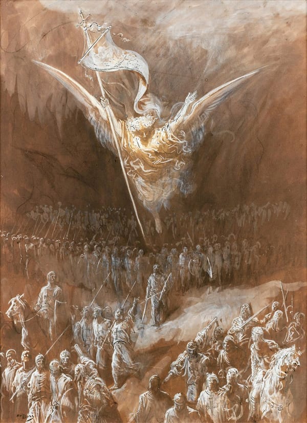 Sketch for one of the eight segments of the dome of the collegiate church at La Granja, Segovia. These Old and New Testament scenes (destroyed in 1918) glorified the Holy Trinity. God reprimands Adam and Eve for disobeying him, while an angel announces to Abraham that his barren wife will bear a child.