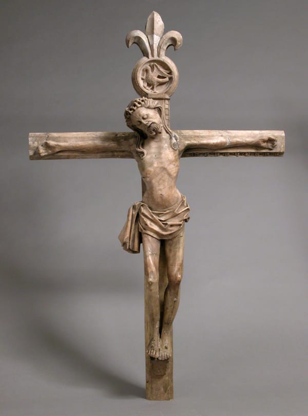 With extraordinary anatomical precision, this sculpture focuses on the suffering of Christ, who is shown still alive and in extreme physical pain. Ivory was the material of choice for depictions of Jesus, not merely because it was an exotic material imported at great expense from southern Africa, but also because at this time the elephant was interpreted as a symbol of Jesus. This figure was carved out of an unusually large tusk of ivory, which determined the C-shaped movement that underscores the body’s suffering. The name of the Spanish artist who carved this work is unknown, but he carved at least two other sculptures of Christ on the Cross that we know of. One is in a museum in Florence, Italy. Another is still today in the church of Santa María in Guadalcanal, a village north of Seville, Spain. source: artsmia.org