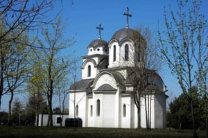 This icon depicts the Dormition of the Mother of God (her "falling asleep" or death). The central figure is Christ, who stands over Mary's body holding a small, swaddled child. This child might represent Mary’s pure soul, which Christ is receiving to carry into heaven.