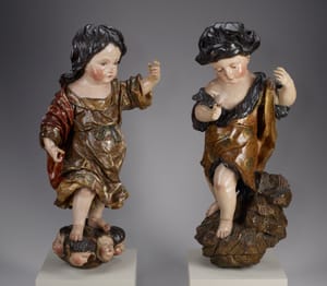 Mary, the mother of Jesus, insists you look her in the eye. She has long inspired intense devotion. Christians believed that a relationship with her would bring them closer to her son, and worshippers identified with her role as a mother. Segna portrays them both as very human and approachable—Jesus plays with his doting mother’s fingers like any other baby. Yet his erect posture and serious countenance convey the wisdom and spiritual authority of the man he would become. The painting was once the central part of a five-panel altarpiece and was likely cut down in the 1800s to fit this frame. source: artsmia.org