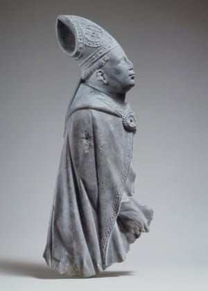 Medieval reliquaries often took the form of the body parts they were created to contain. Bust reliquaries for the skulls of saints were placed on or near altars and, by the late Middle Ages, were assembled in large numbers in some church sanctuaries, from Cologne in the north to Ubeda in southern Spain. These examples, with elaborate jewels, beautifully braided hair, and richly decorated gowns, probably represent companions of the virgin martyr Saint Ursula, believed to have been eleven thousand in number. The small glazed medallions resembling jewelry once displayed additional relics. On particular feast days, such busts could be carried in processions. src: metmuseum.org