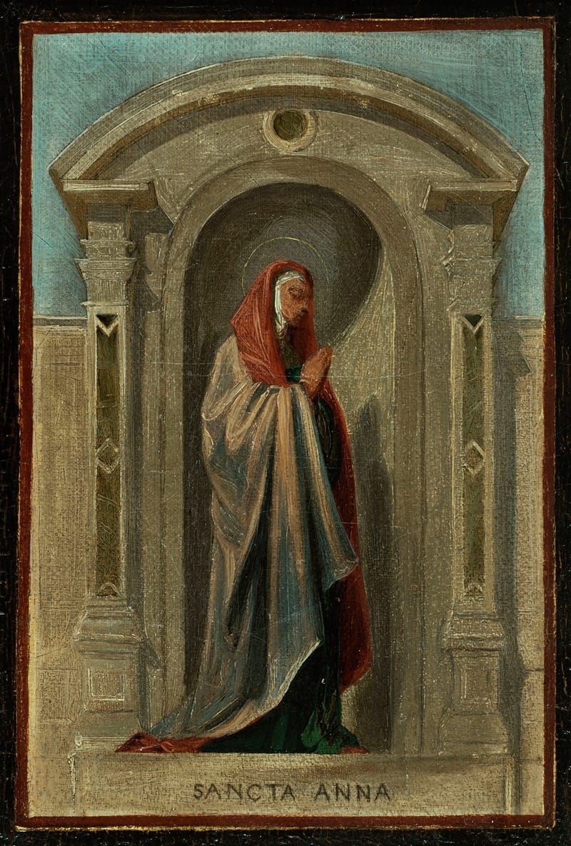 Sainte Anne: Saint Anne, traditionally honored as the mother of the Virgin Mary (from the Protoevangelium of James). Auguste Hesse: 19th‑century French painter known for religious, historical, and allegorical works and stained‑glass designs.
