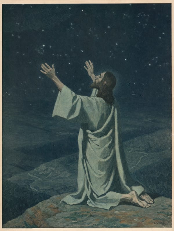 The 1931 lithograph "The Good Shepherd" by Gebhard Fugel is among his better-known works on this theme. The artwork depicts Christ as the shepherd, a common representation in Christian art, underlining Fugel’s focus on traditional biblical scenes.