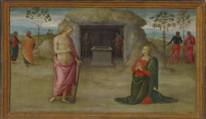 The grief-stricken faces of the Virgin Mary and John the Evangelist once faced another panel referencing the Crucifixion. Their expressive features and weighty three dimensionality make their sorrow over Jesus’s death palpably human, while the golden space that they inhabit reinforces their sanctified status. Netherlandish devotional scenes sought to help viewers reach a liminal space between earthly reality and spiritual vision, a major objective of Christian prayer. Images of Christ’s suffering and his followers’ grief were meant to inspire empathy as a route to personal salvation.